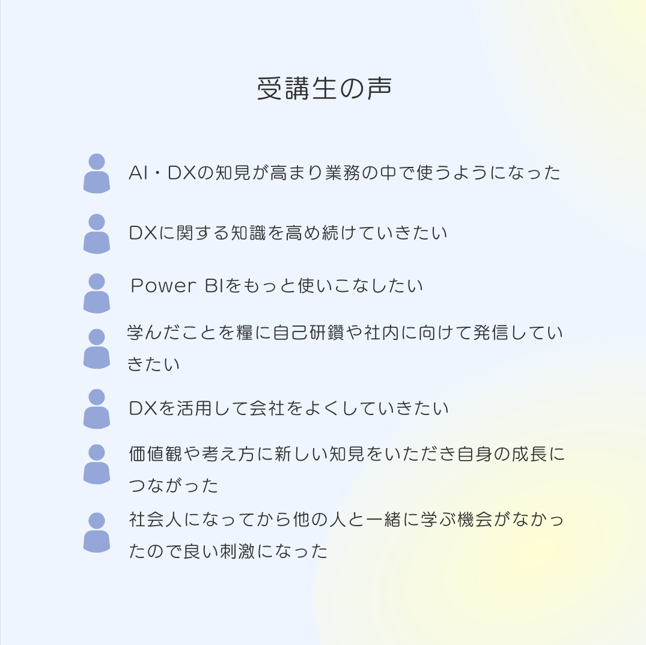 修了証書授与の前には、各修了生から本プログラムに関する感想や今後の抱負などが述べられました。