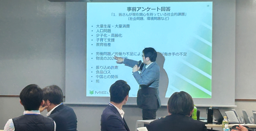 後半ではグループワークを通じて、参加者それぞれが自社の強み・価値と地域・社会課題を結びつけたCSRのあり方を検討し、CSRを「理念の実装」として捉える視点を共有しました。